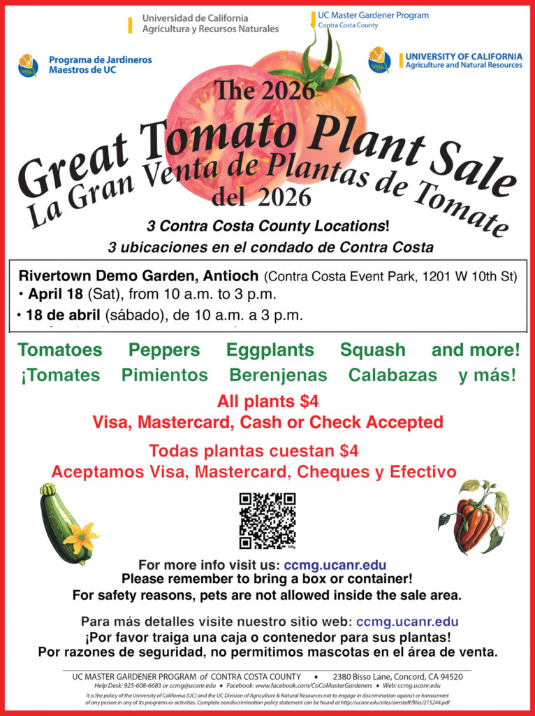 The UC Master Gardener program in Contra Costa County’s 2026 Annual Great Tomato Plant Sale fundraiser in East County will take place April 18 in Antioch.