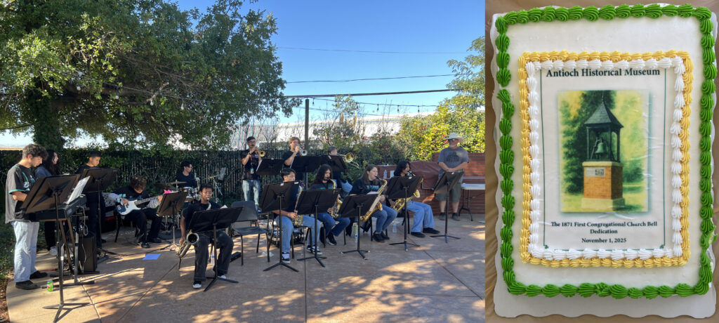 The Antioch Historical Society dedicated the refurbished 1871 First Congregational Church bell housed in the newly constructed Unity Bell Tower on Saturday, Nov. 1, 2025. Joined by the mayor, council members and residents, Society members also celebrating the organization’s 50th anniversary and the 25-year anniversary of the Museum residing at the historic 1910 Riverview Union High School Building.
