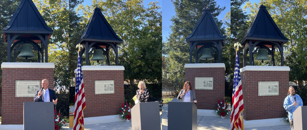 “Behind me stands the 1871 Meneely Foundry bell – a symbol of that legacy,” he continued. “When it first rang, Antioch has just 600 residents. Among those who heard its chime were Adelia Kimball, at 12 years old, our first teacher, Rev. William Wiggins Smith, Chairman of the City Council (and one of the community’s founders, first Mayor Roswell Butler Hard, and Thomas Gaines, the city’s first Black residents. They all heard the bell.”