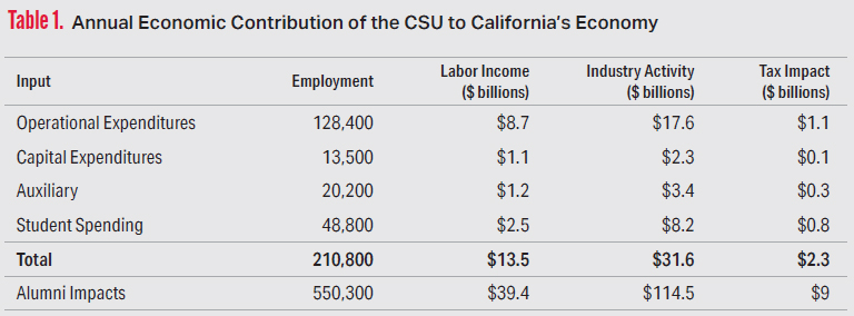 Econ Contrib of CSU to CA Economy Table