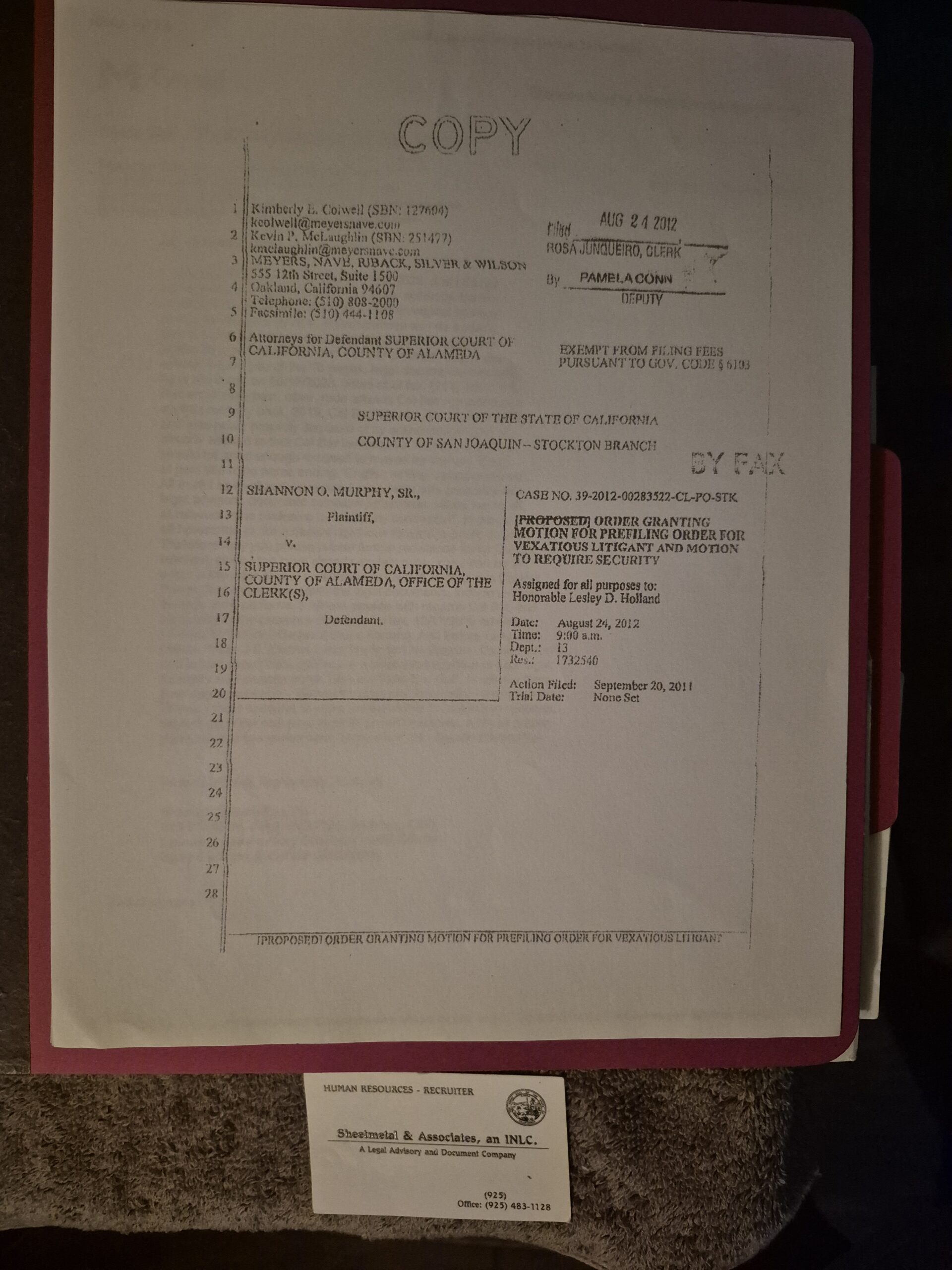 According to Justia, in 2023 he sued the Antioch Police Department for civil rights violations, in the U.S. District Court for the Eastern District of California and last year, Murphy sued that court’s Office of the Clerk. According to Trellis, in 2021, he sued O’Reilly Auto Parts who, in response, filed a motion to declare Murphy a vexatious litigant. Also, in 2021, according to casemine.com, he sued the I.R.S. Taxpayer Advocate.