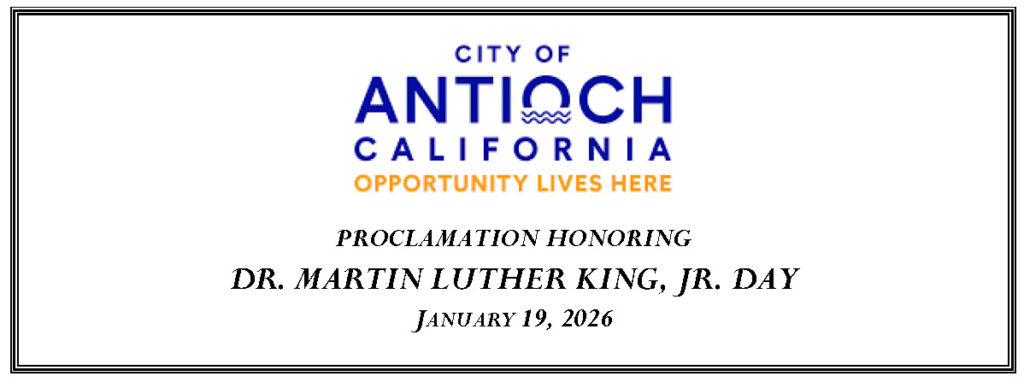 NOW, THEREFORE, I, RON BERNAL, Mayor of the City of Antioch, do hereby proclaim January 19, 2026, as “Dr. Martin Luther King, Jr. Day.” and call on all of us to gather strength from Dr. King’s legacy and use our moral authority to push for a more equitable city, state, society and world.