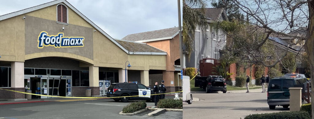 According to Captain Desmond Bittner, “The suspect vehicle backed into the FoodMaxx store before the officers arrived,” smashing in the front glass doors. One employee said store employees heard the crash, saw some of the commotion, called police who arrived quickly, and that there was more than one suspect who entered the store and attempted to steal alcohol.