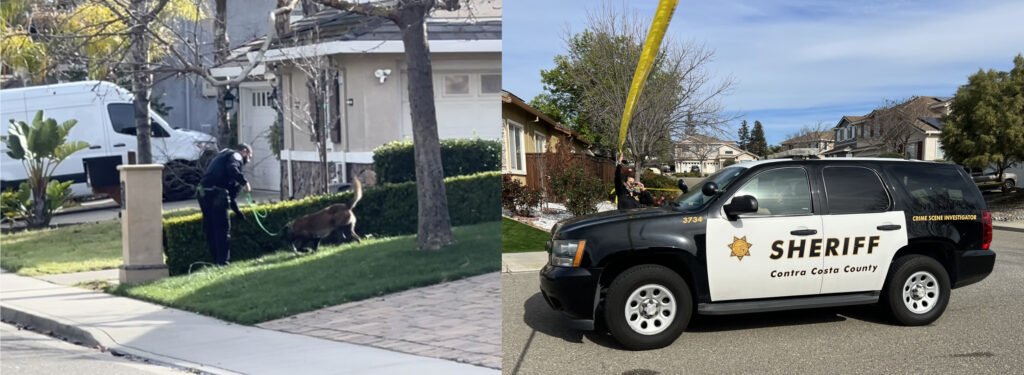 Two K9 Officers could be seen searching the perimeter and a Contra Costa County Sheriff’s Crime Scene Investigator could be seen leaving Southwood Way before detectives arrived.
