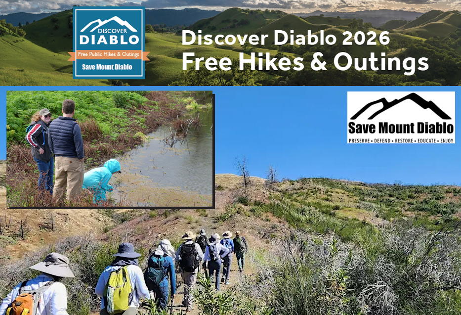 Save Mount Diablo is offering a total of 36 more excursions in 2026 in Contra Costa County (Walnut Creek, Clayton, Concord, Pittsburg, Antioch, Brentwood, Oakley, Danville, and San Ramon), Alameda County (Dublin, Livermore, and Pleasanton), Stanislaus County (Patterson), and San Benito County (Hollister and San Juan Bautista). All events are free to the public. Trailblazers of all ages and skill levels are welcome to choose appropriate outings from our extensive offerings.