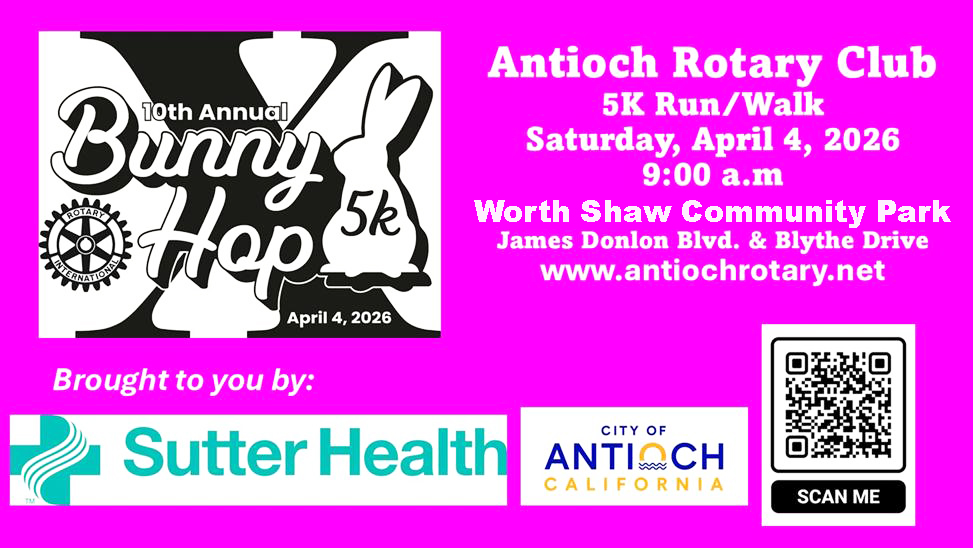 For more information about the race scan the QR code in the flier above or visit 10th Antioch Rotary Club Bunny Hop 5K a.k.a. Antioch Rotary BunnyHop “X”.