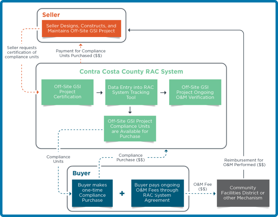 Developers or contractors may be interested in building Off-Site GSI Projects to generate compliance units that can be sold through the Contra Costa County RAC System.