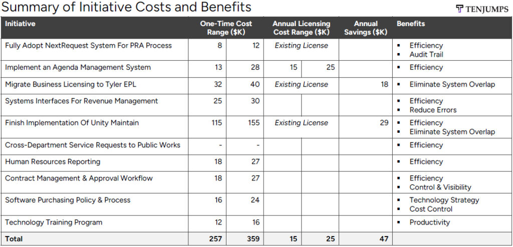 At the beginning of the regular meeting, the Council will receive two presentations. The first is a Technology Assessment & Roadmap Presentation from Tenjumps. The firm was hired by the City to “first assess the current state of the existing technology, then determine the desired future state, and create a roadmap to achieve it.”