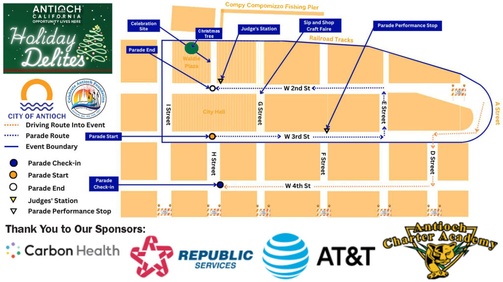 Join Antioch for the annual Holiday Delites Celebration in historic, downtown Rivertown on December 6, 2025. Enjoy the Holiday Sip & Shop Artisan Fair brought to you by the Celebrate Antioch Foundation before lining the street to see the lighted parade go by with an appearance by Santa at the end!