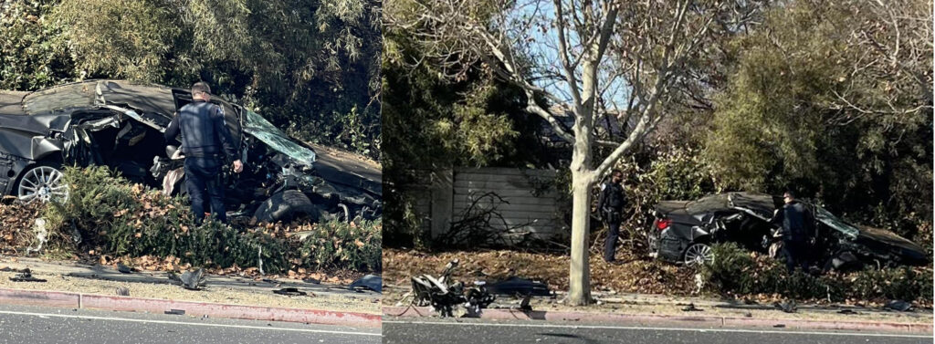 Antioch Police Officers investigate the crash of a BMW on Deer Valley Road Friday afternoon, Feb. 6, 2026. Photos courtesy of a resident who chose to remain anonymous.