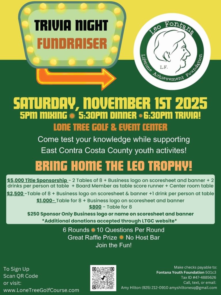Fontana Youth Foundation Trivia Night Fundraiser Nov. 1